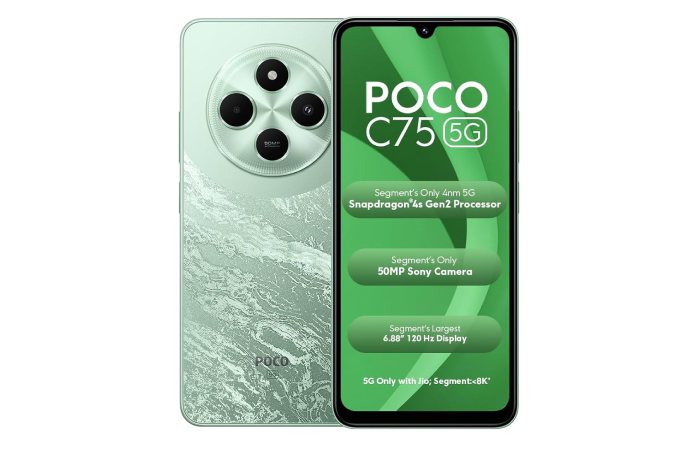 Most listings show the Poco C75 5G featuring: